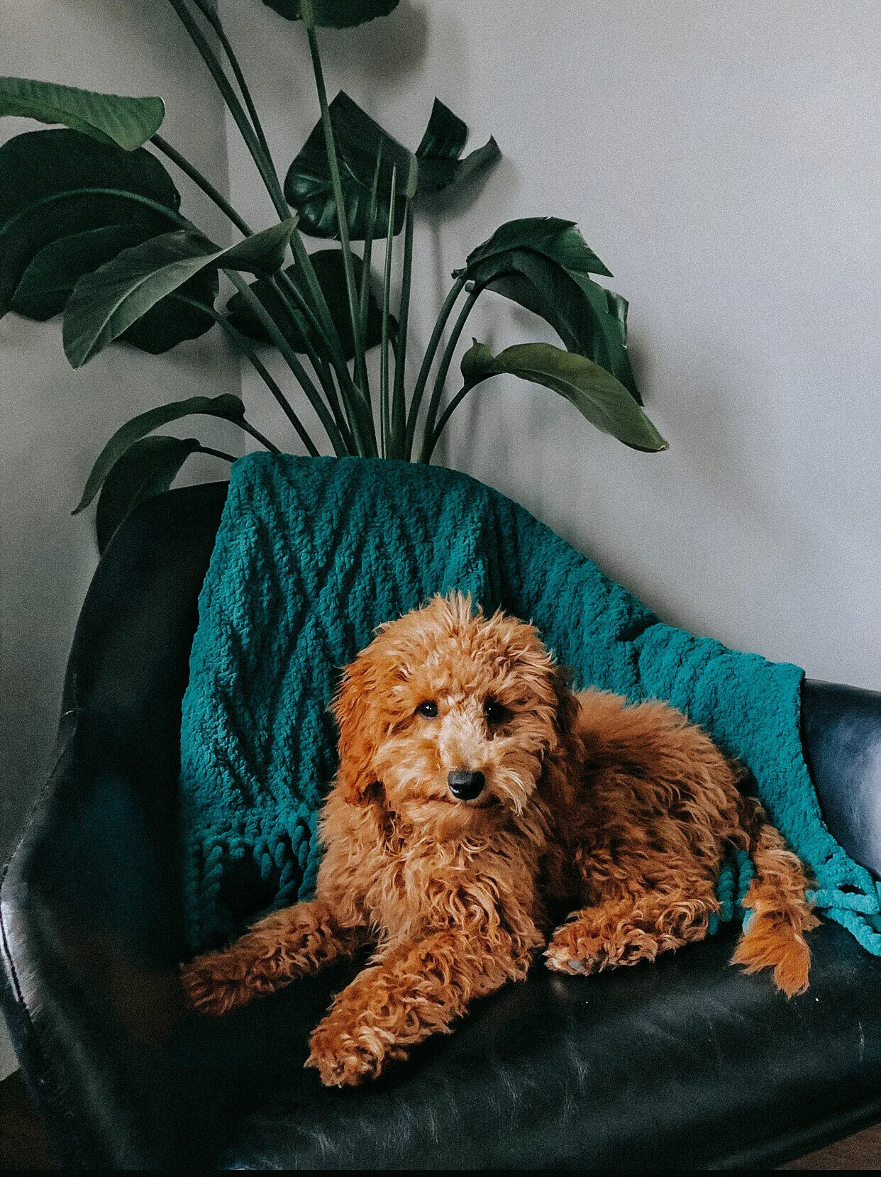 When you can’t find me behind my computer, you most likely will find me with a ball of yarn, an iced chai, and my mini golden doodle, Obi-Wan, by my side ‘helping’.